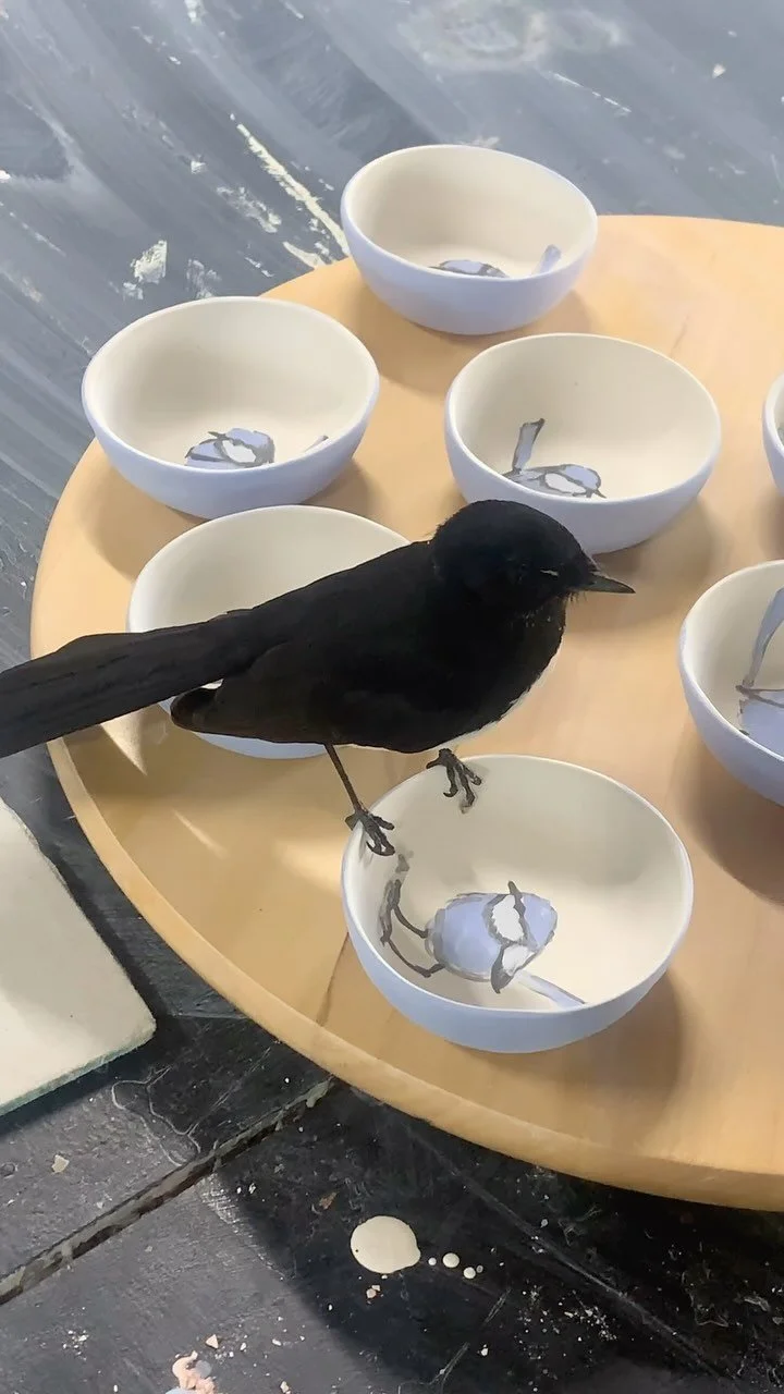 Now today, I work from my sunlit studio in Fremantle surrounded by the scent of fresh clay, my flower and vegetable gardens. I witness the diverse native bird life, my chooks and ducks jostling for prime position and Willamina , my resident Djiti-Djiti, (Willy Wagtail). She visits me in the studio, flittering about cleaning the insects from studio corners, standing nearby to watch me work and chirp her critiques…often suddenly finding herself immortalized in clay.